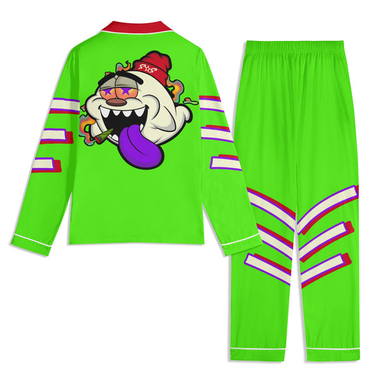 G.S.G Ghost Star Ghouls Unisex GooGreen/Maroon Long Sleeve Adult Nightwear Pajama Set