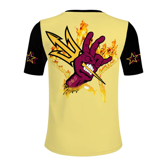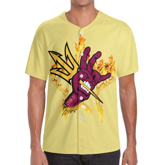 Sun Devil Forks Up Edition Mens Tan Short Sleeve Baseball Jersey