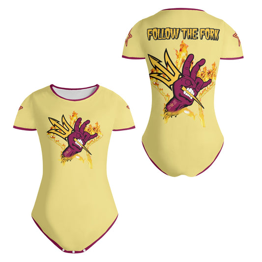 Sun Devil Follow The Fork Tan/Maroon Edition Womens Soft Short Sleeve Bodysuit