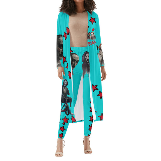 Un-Tamed S.O.S Edition Womens Turquoise Long Sleeve Cardigan and Leggings 2pcs