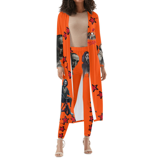 Un-Tamed S.O.S Edition Womens Orange Long Sleeve Cardigan and Leggings 2pcs