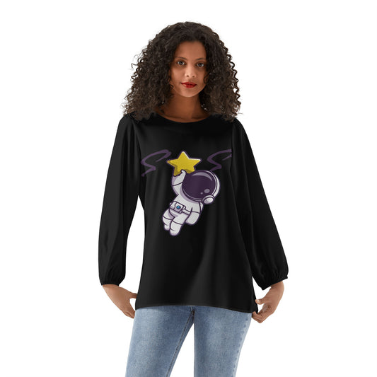 Space Man 23 Womens Black Long-Sleeve Chiffon Blouse