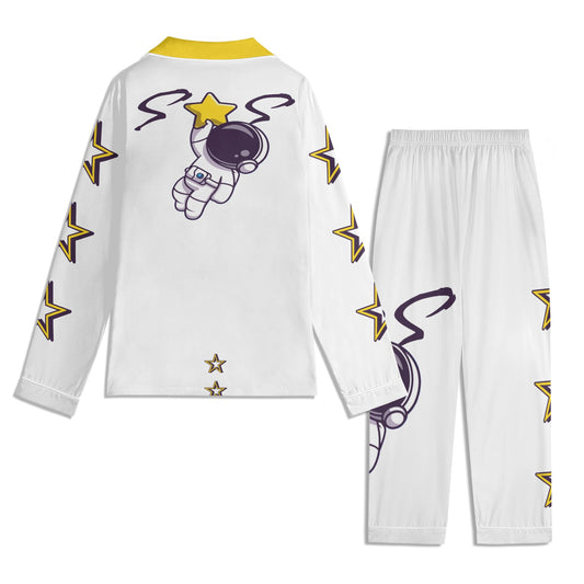 Space Man 23 Children White/Gold Long Sleeve Nightwear Pajama Set