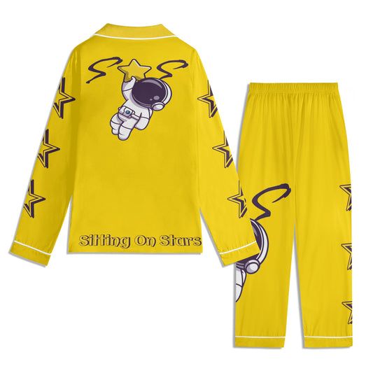 Space Man 23 Children Gold Long Sleeve Nightwear Pajama Set