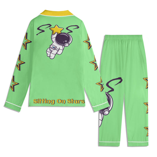Space Man 23 Children MintGreen/Gold Long Sleeve Nightwear Pajama Set