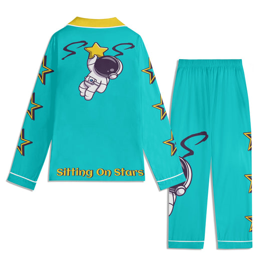 Space Man 23 Children Turquoise/Gold Long Sleeve Nightwear Pajama Set