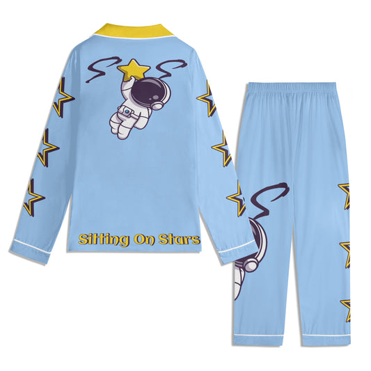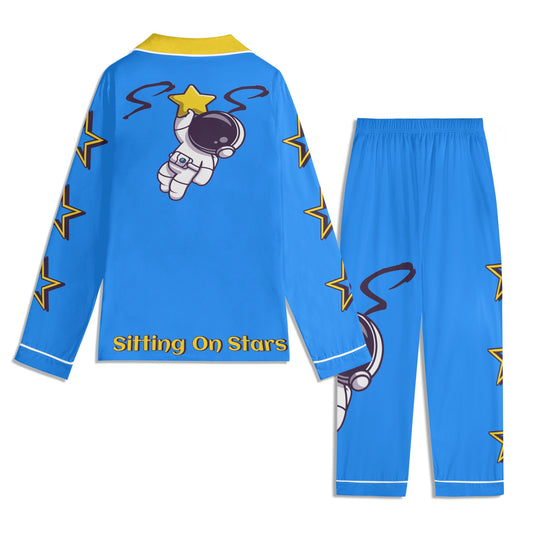 Space Man 23 Children SkyBlue/Gold Long Sleeve Nightwear Pajama Set